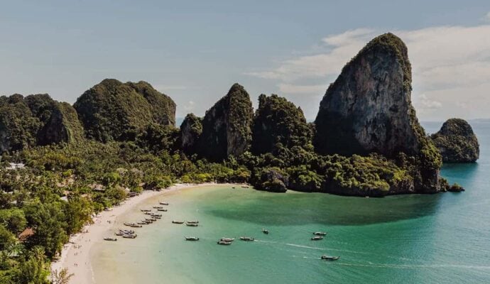 - Krabi: Prepare to be amazed by the breathtaking beauty of Krabi, where towering limestone cliffs meet crystal-clear waters. Relax on the idyllic Railay Beach, embark on an island-hopping adventure to the Phi Phi Islands, and explore the stunning natural wonders of the Thung Teao Forest Natural Park.