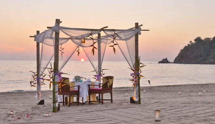 Your honeymoon adventure continues with a trip to the picture-perfect island Koh Phangan. Explore the dazzling seas surrounding Samui and Koh Phangan on a real-life sailing adventure. Under the guidance of your expert sea captain, learn to sail and navigate your way from island to island, taking your pick from the hidden beaches waiting to be discovered at every turn. Stop for a spot of swimming and snorkeling to experience exotic marine life up close. Anchor at Haad Yuan, one of the most stunningly beautiful beaches in all of Thailand. Enjoy a scenic lunch at a restaurant perched on top of a giant rock, affording you a bird’s eye view of the sights, sounds, and beauty of the island and coastline which enfolds you. Set sail back to Koh Samui across the sparkling waters into the sunset, an icy cold beverage in hand. For your last dinner, prepare to have a romantic feast with a flame-lit, beachfront dinner under a spectacular night sky.